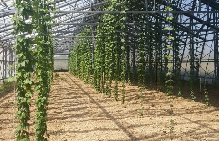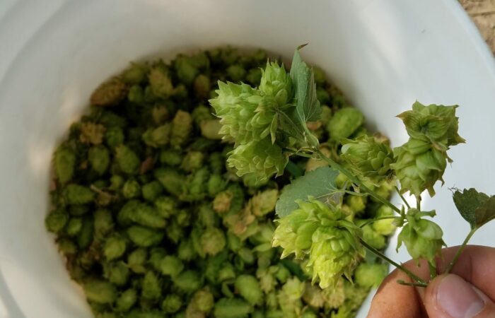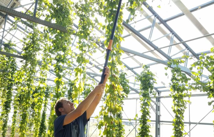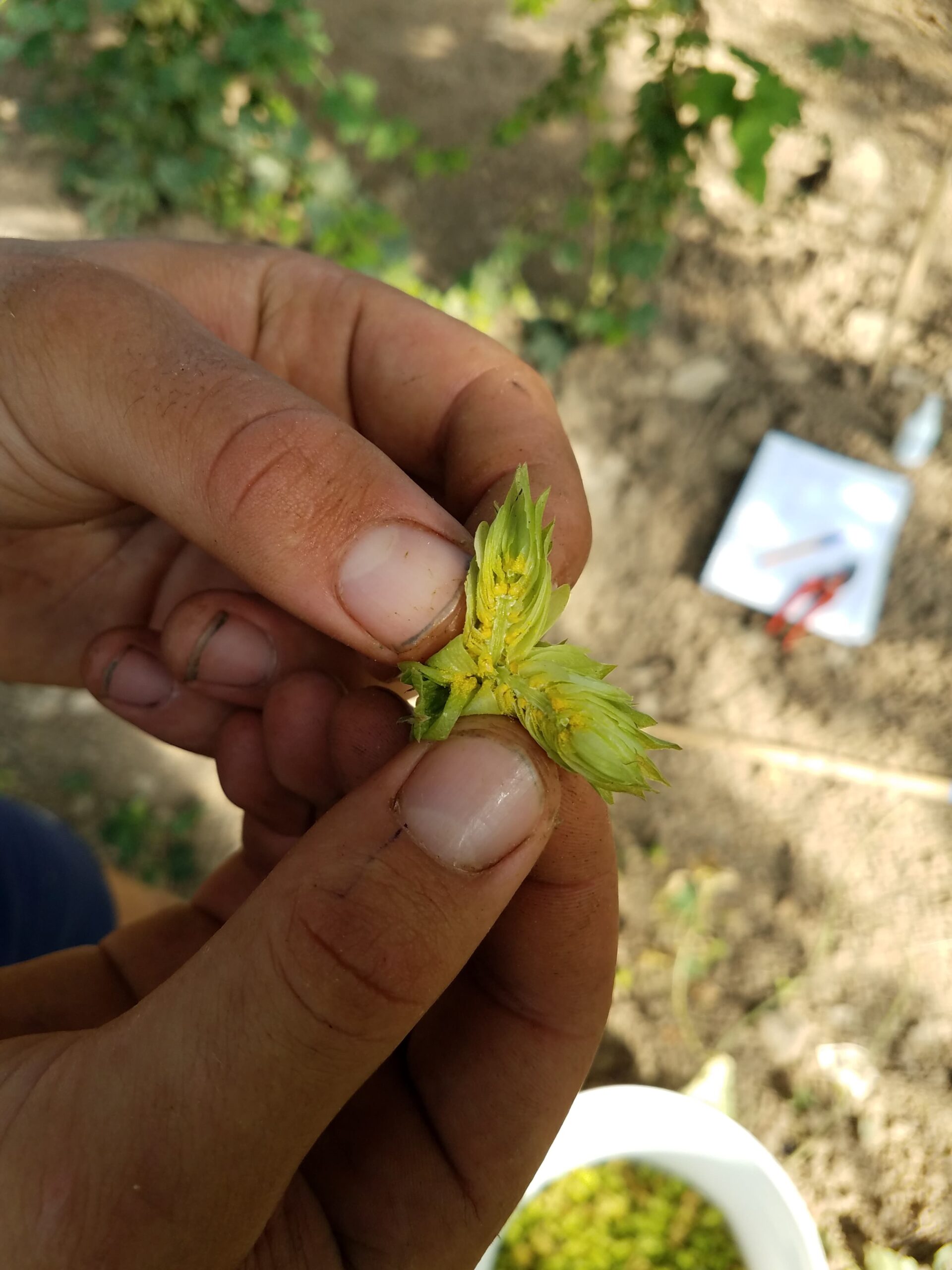 C’est au Domaine de la Grande Courtade, littéralement porte d’entrée de Béziers (une borne du XVème siècle en atteste), que la première récolte de houblon a eu lieu, parallèlement aux vendanges. Nous avions choisi cet hiver les variétés à planter avec Benoit, responsable de culture : Galena, Chinook, Cascade, Centenial et Saaz. Les quatre premières variétés se sont parfaitement adaptées à notre climat méditerranéen, grâce à leur culture sous serres photovoltaïque, une première en France !
